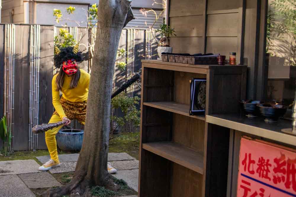 令和六年節分の日、スタッフが鬼になり各ショップを回って豆まきを行いました。