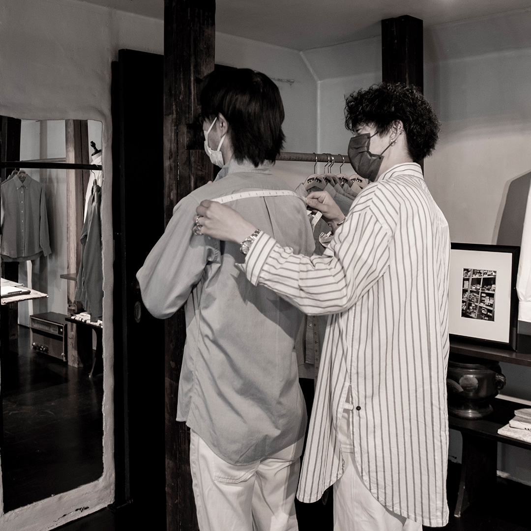 - お選びいただいたシャツの形から、お好みの着丈・袖丈・肩幅・襟のサイズを決めていきます。