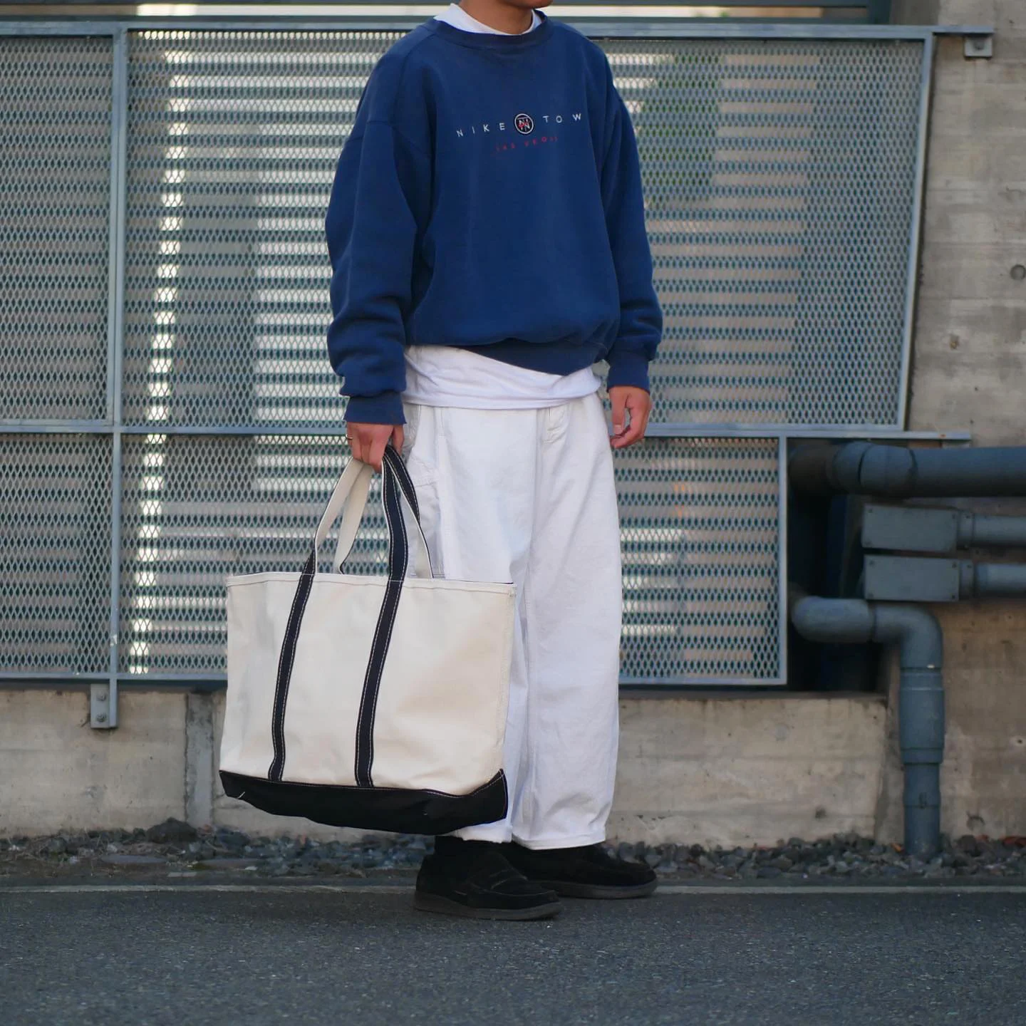 1944年、氷の塊を運ぶためのバッグとして発売されて以来、品質にこだわり続けてきたL.L.Beanの定番トート・バッグ。今でも同じ丈夫な24オンスのキャンバス地を使用して、米国メイン州の自社工場でひとつひとつ手作りしています。重い荷物もしっかりとサポートするオーバーラップ部分は、縫い目が劣化したり、ほころんだりすることのない、丈夫なナイロン糸のダブル・ステッチで補強されています。こちらは安心安全なジップトップタイプになります。SHOP:HIGH! STANDARD、BLUE BLUE KANDA - L.L.Bean
