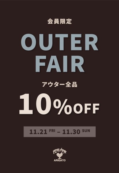 更に今回はアウターフェアのラスト2日間での開催ということで、会員のお客様はアウターが10%OFFとなります!